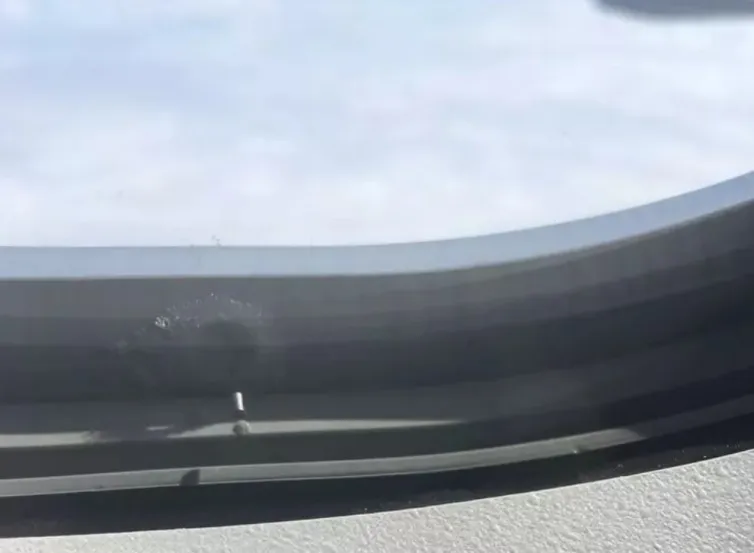 这个小孔还有一个功能——它能帮工程师们判断飞机舷窗是不是漏气了。我们知道,飞机座舱是一个加压环境。如果外层舷窗某个位置出现了细微裂纹或密封不严,舱内的空气就会顺着小孔喷出去,形成一股细小的气流。这股气流会冲刷外层舷窗的内壁,久而久之,在那个位置就会留下明显的痕迹,就像玻璃上被水冲过的水迹一样。